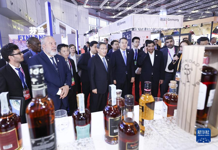开幕式前,李强参观了企业展。开幕式后,李强同与会外国领导人共同巡馆。
